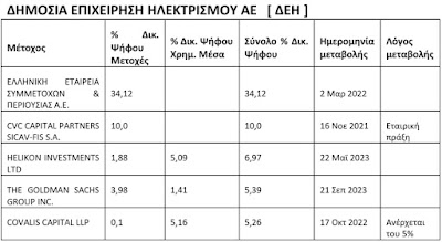 της ΔΕΗ στην οποία ΔΕΝ συμμετείχε το Δημόσιο),το 10% των δικαιωμάτων ψήφου της